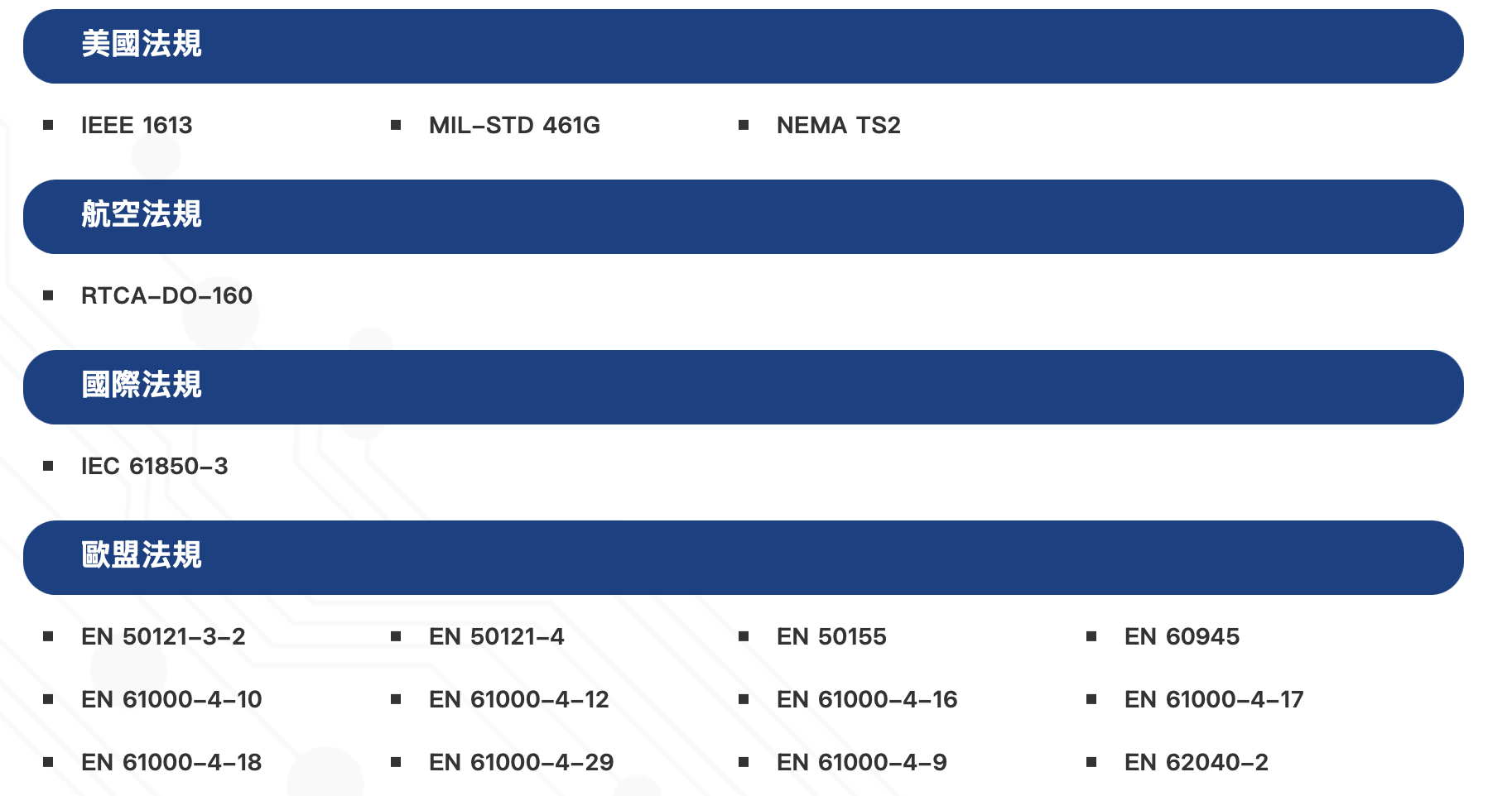 包含鐵道、航海、變電場、航空、軍規....等等特殊項目